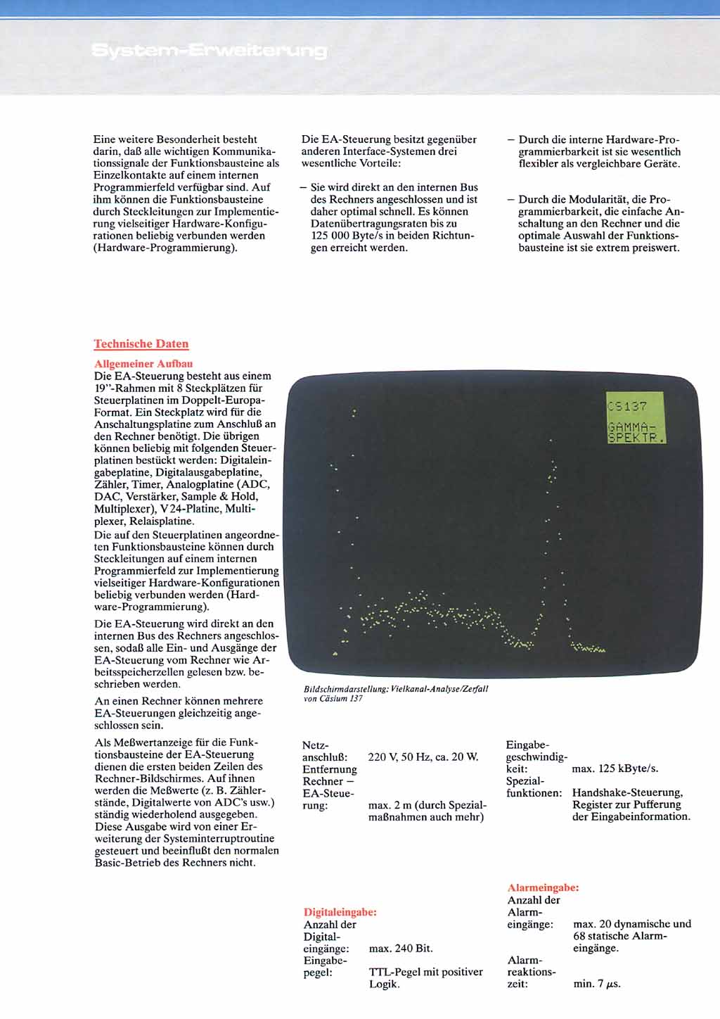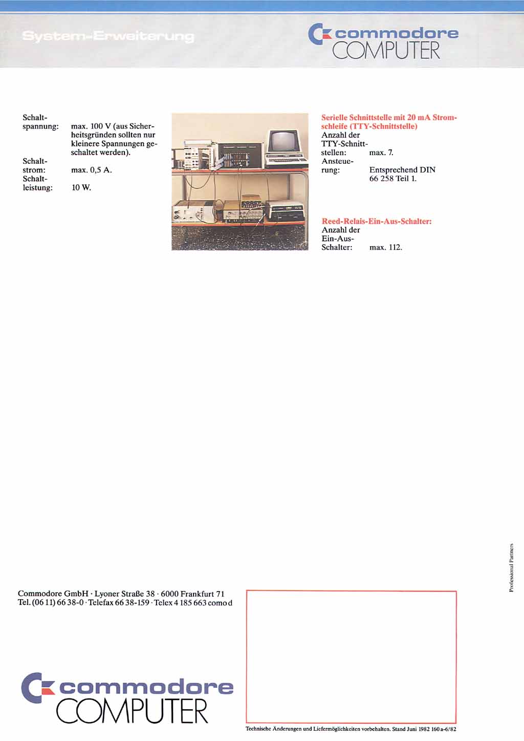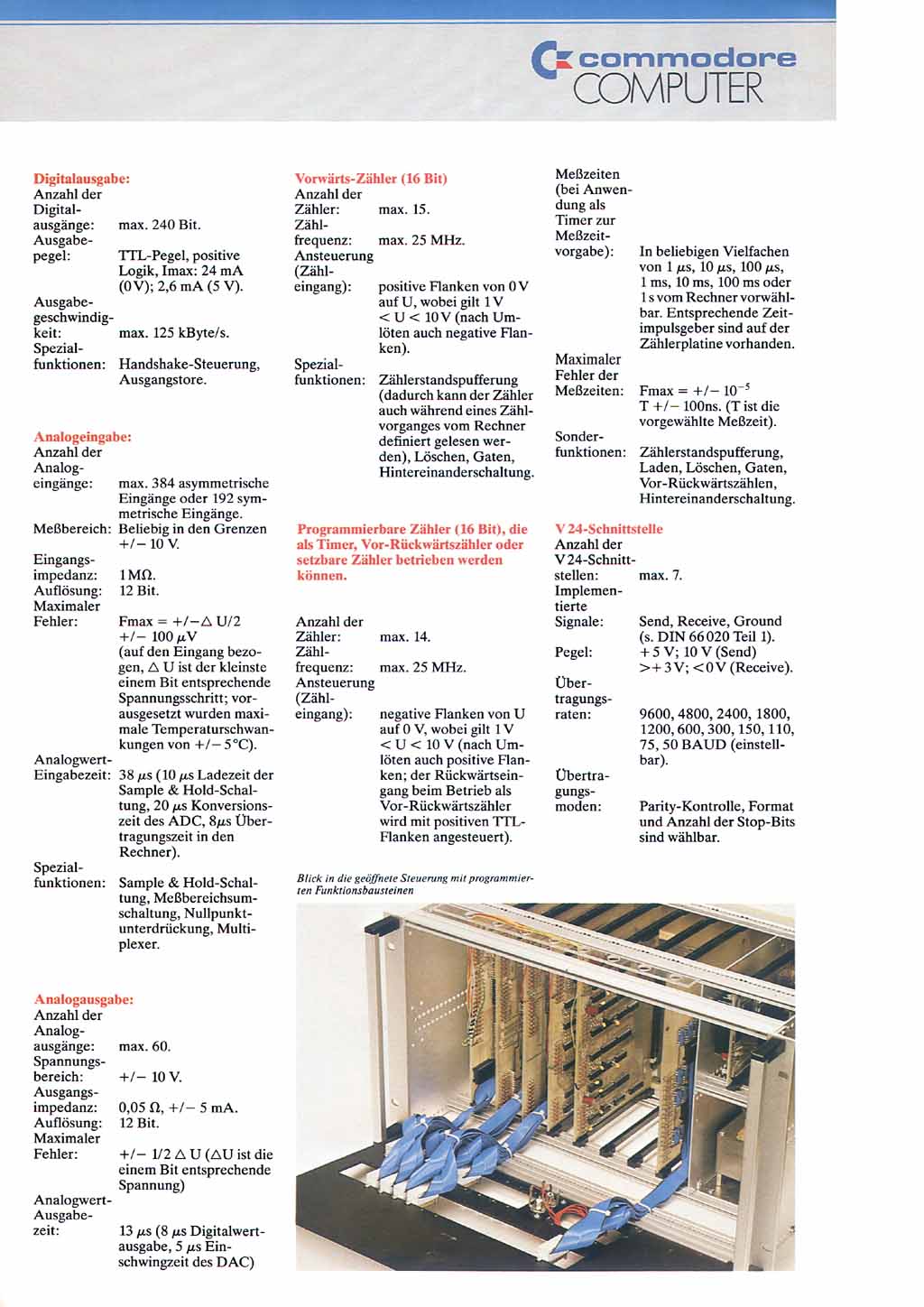 In 1982 the Programmable Interface System CBM4270 came out. It consists of a 19"-rack which could be equipped with up to 8 interface-boards with different functionality. With this controller the opportunities of the CBM-Computers were extendet significant.