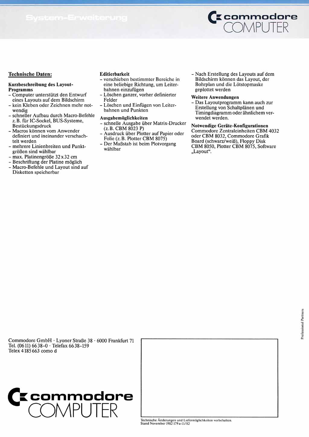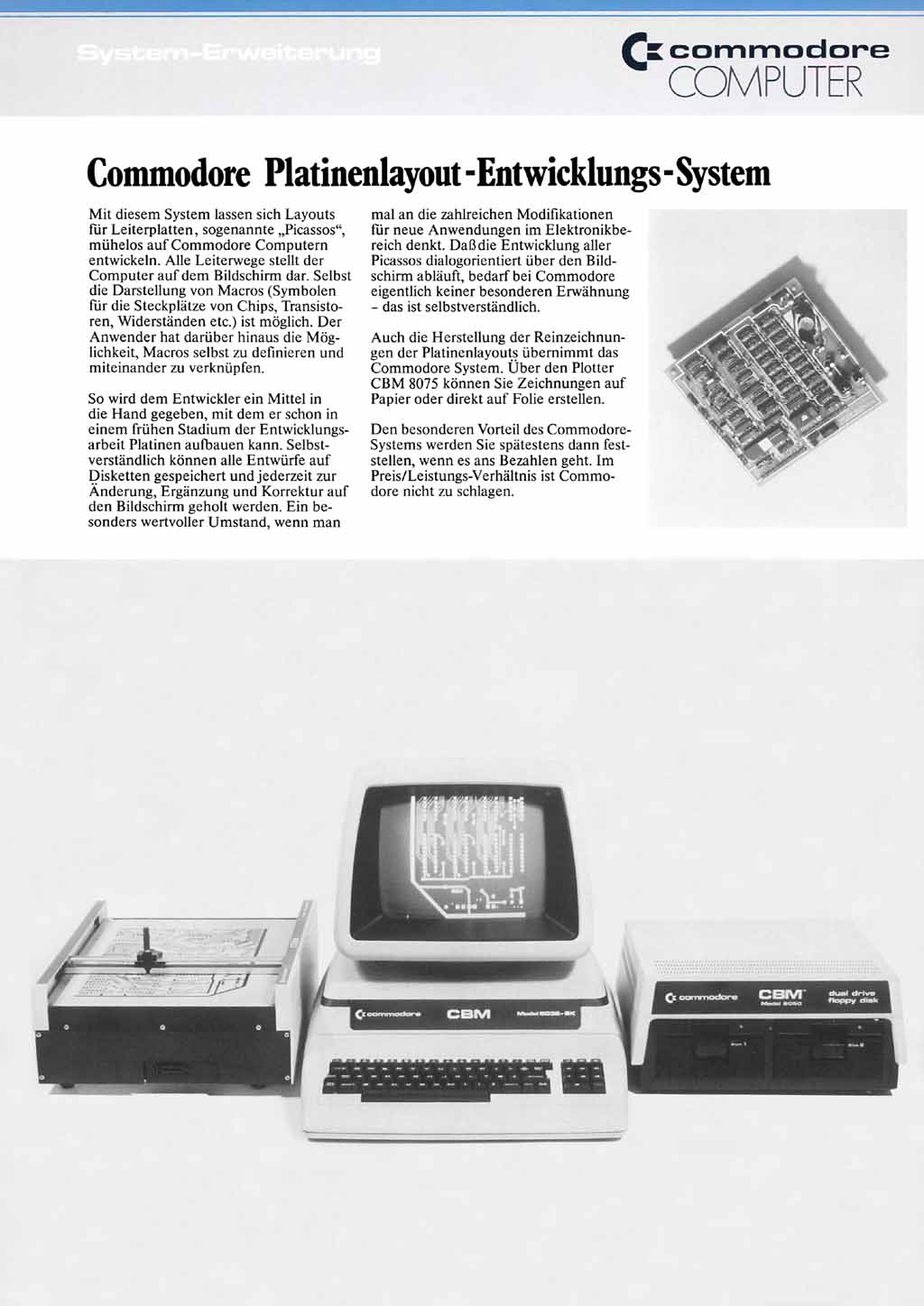 With the above mentioned graphics card, the pen-plotter CBM4075 and the corresponding software, "Layout-Sticking" became redundant even for smaller firms. Still today the advantage of developing a document with computers is the flexibility in the event of alterations and errors!