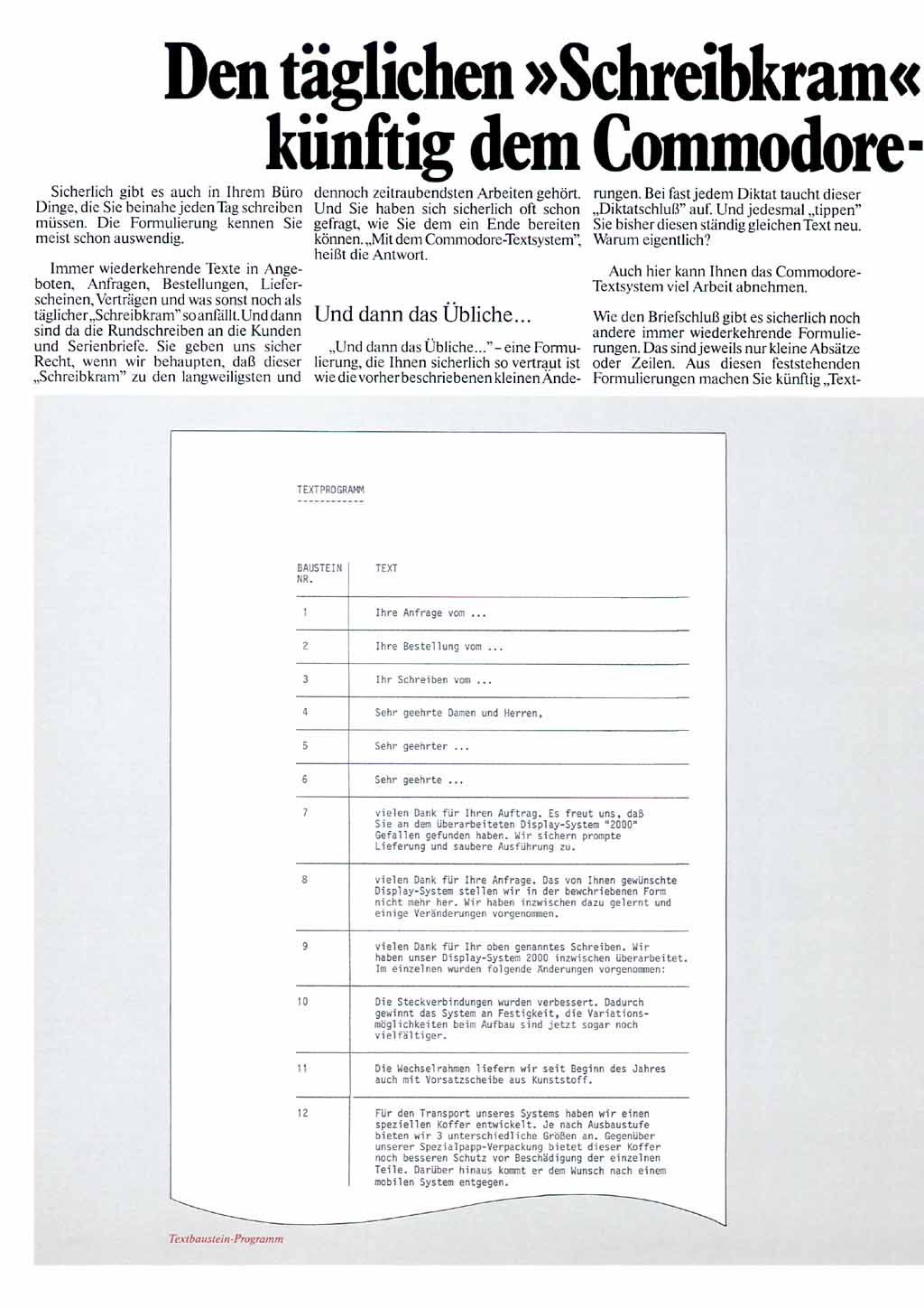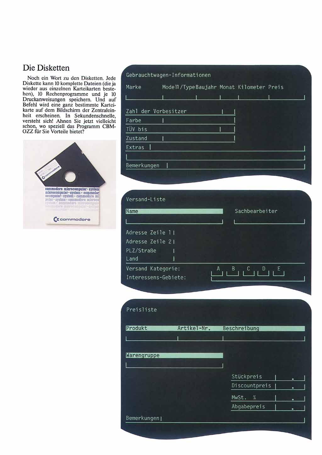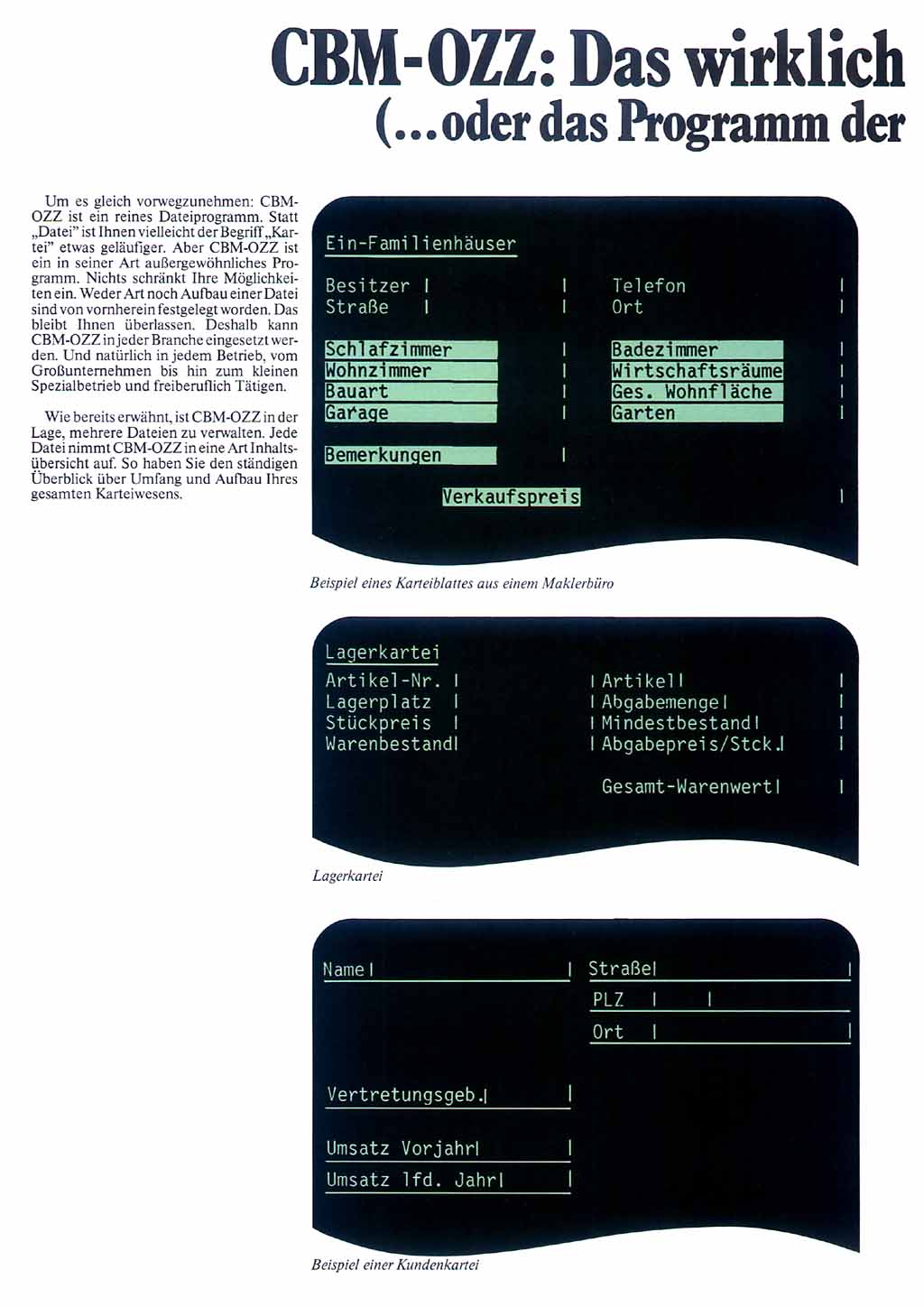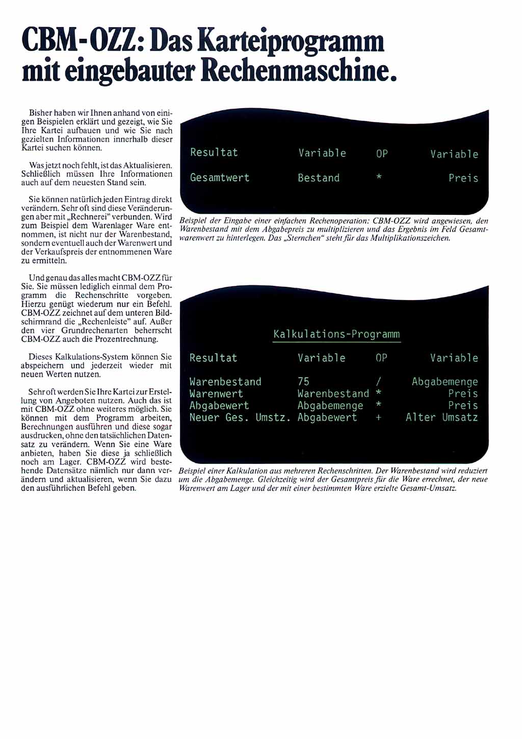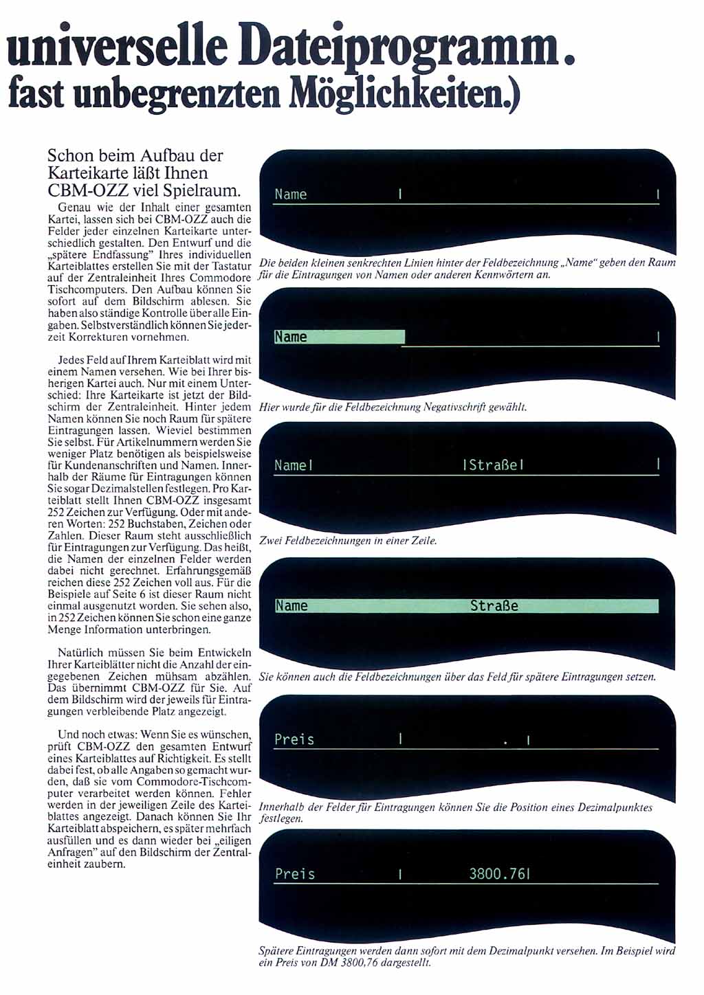 Late in the year, Commodore completed its range of programms for the 8000-series to an "Office-Bundle" with the universal database "OZZ".