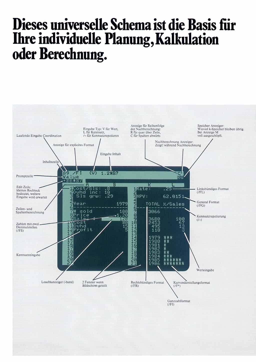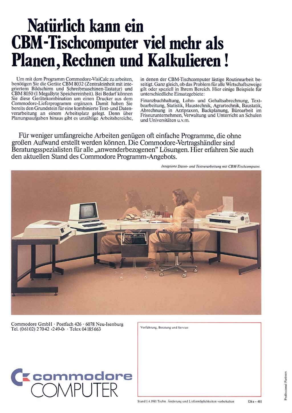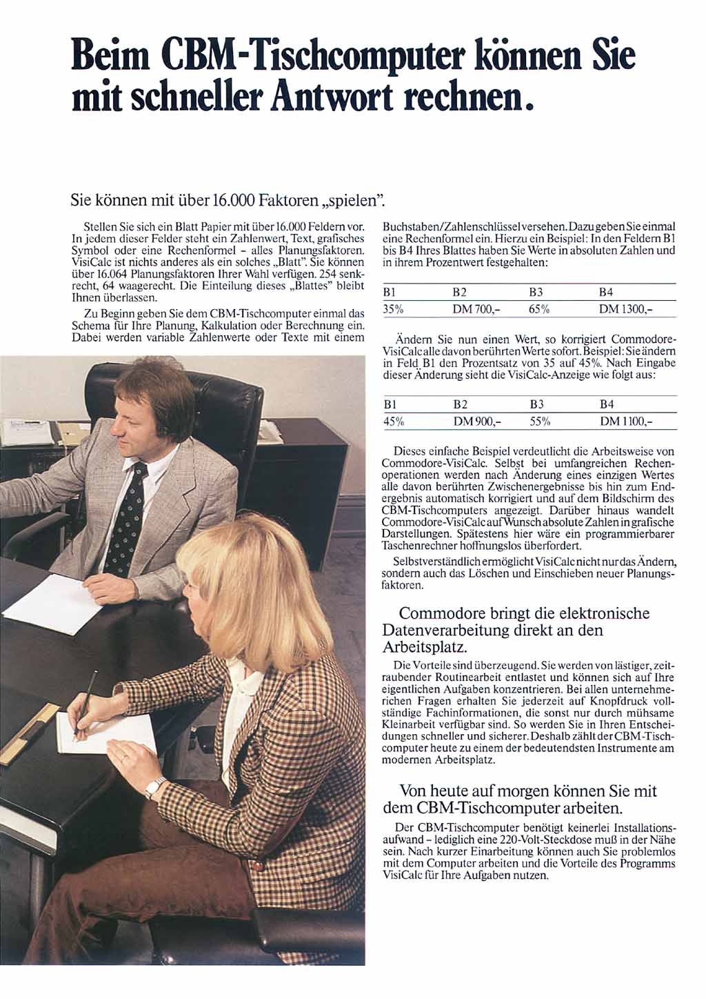 Here an advertisement for the Commodore-Version of the wellknown spreadsheet "VisiCalc", which dated likewise from the year 1981.