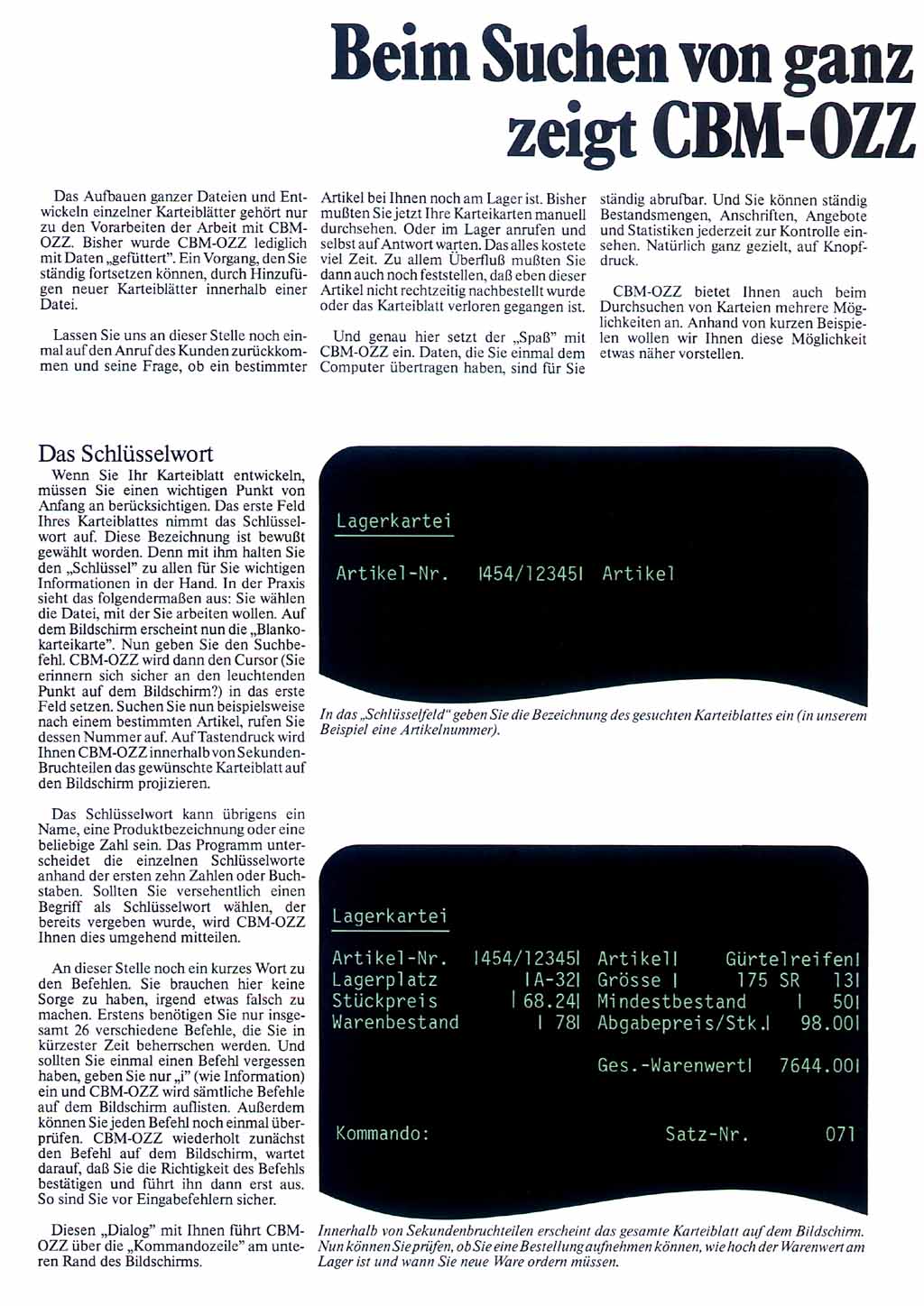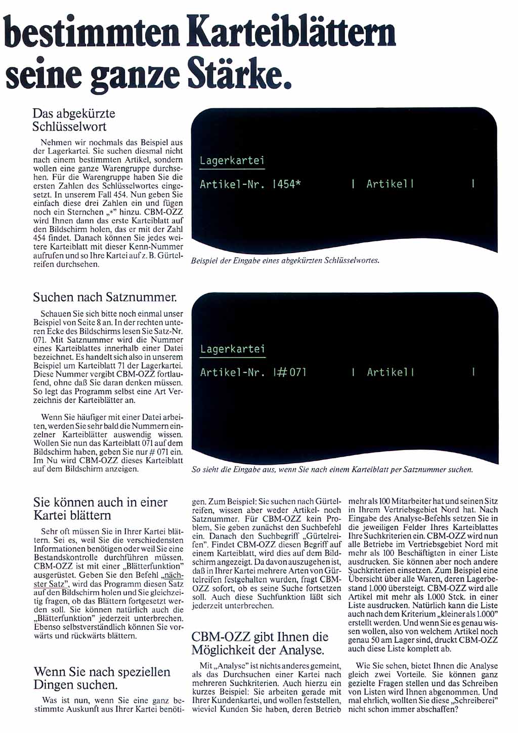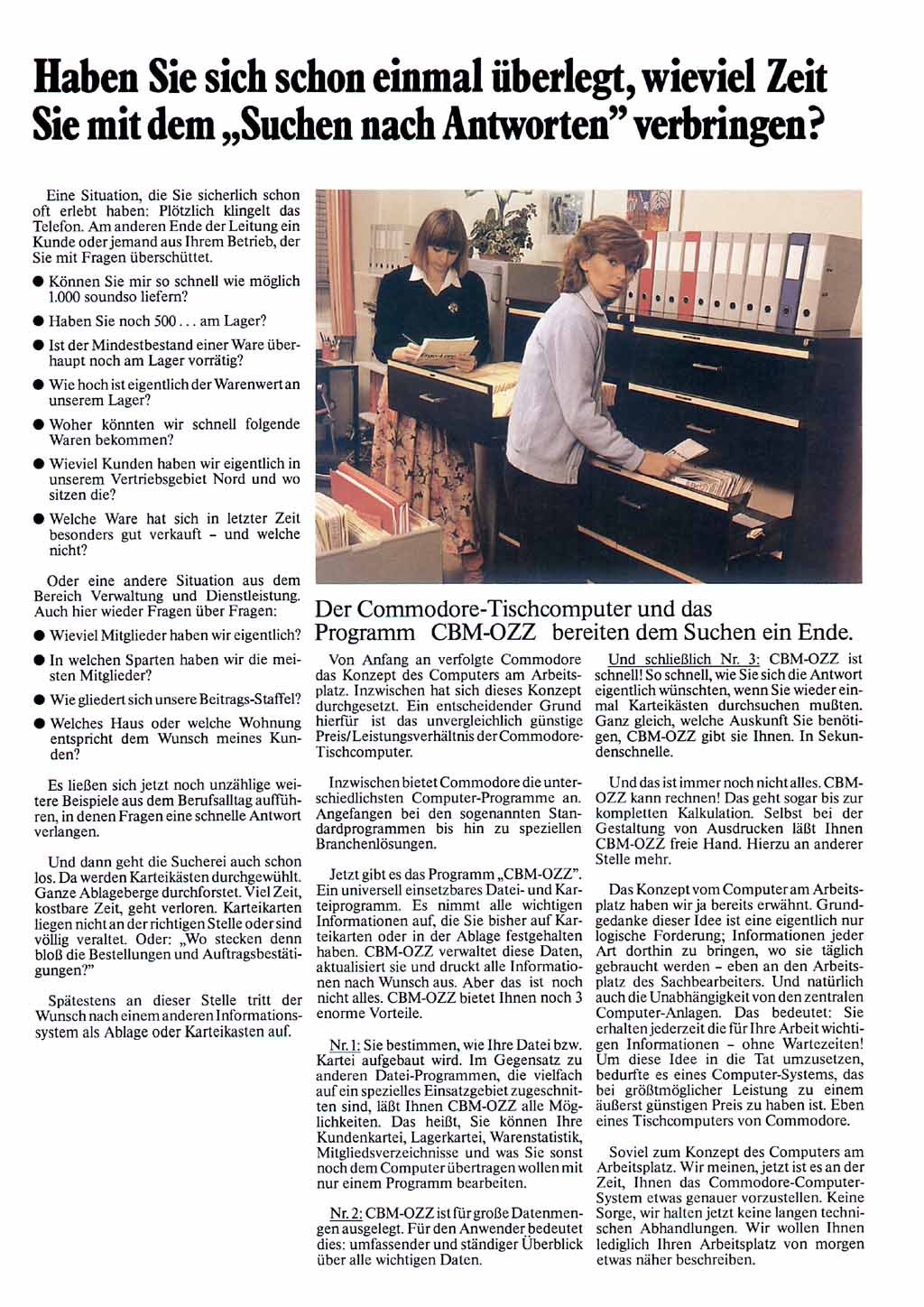 Late in the year, Commodore completed its range of programms for the 8000-series to an "Office-Bundle" with the universal database "OZZ".