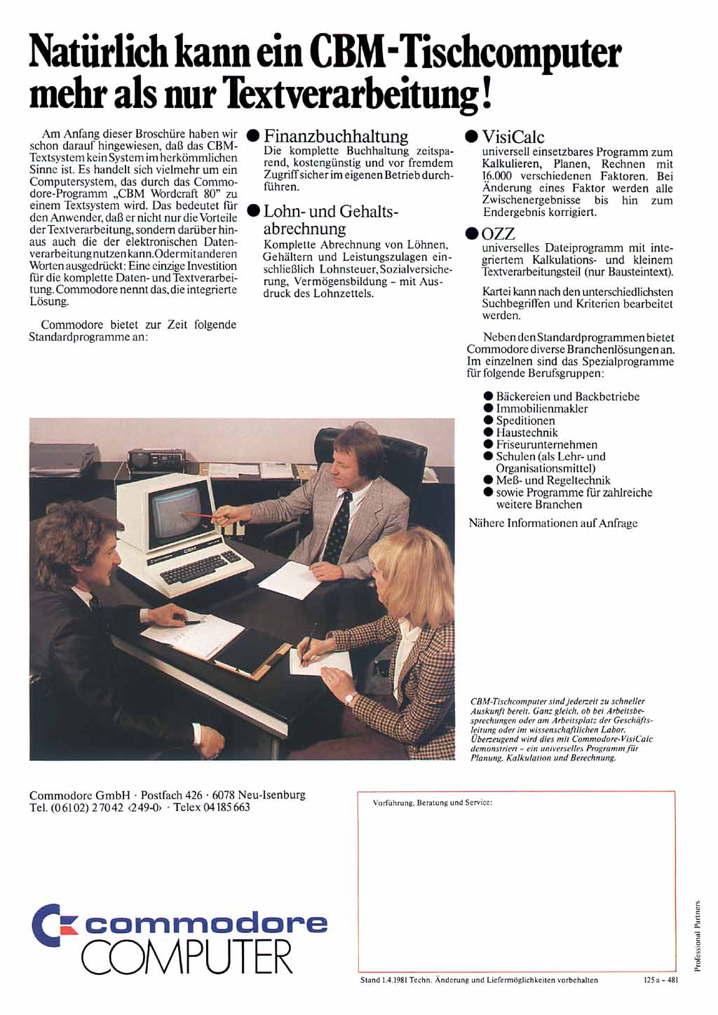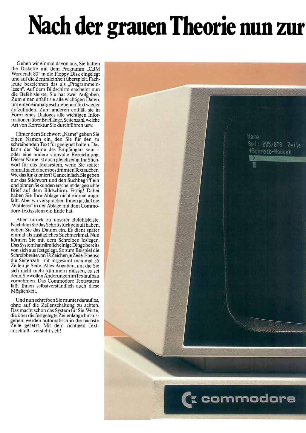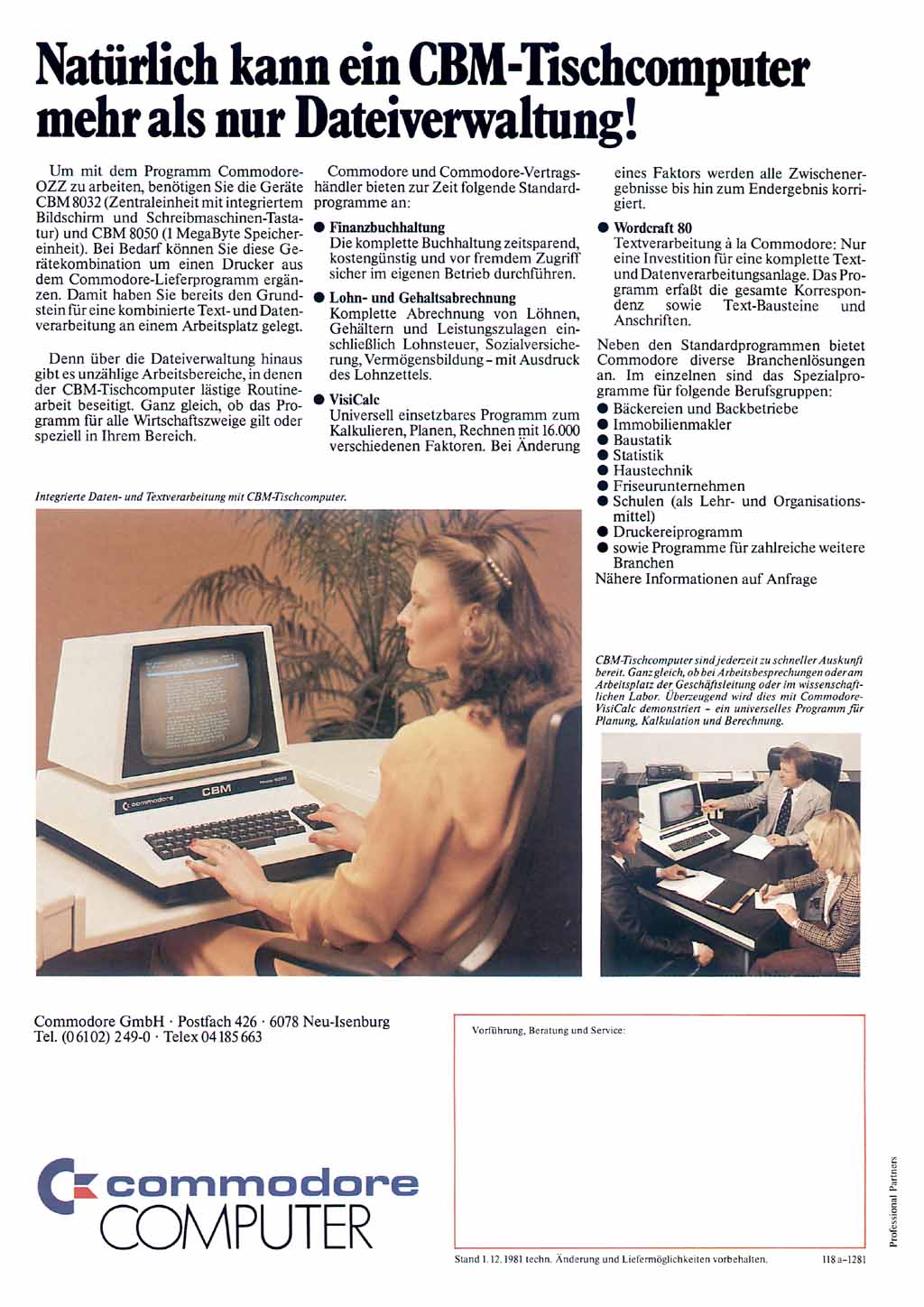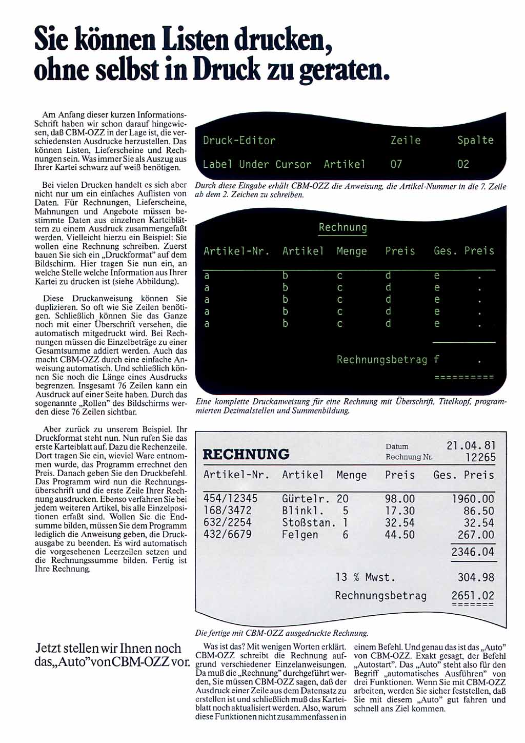 Late in the year, Commodore completed its range of programms for the 8000-series to an "Office-Bundle" with the universal database "OZZ".