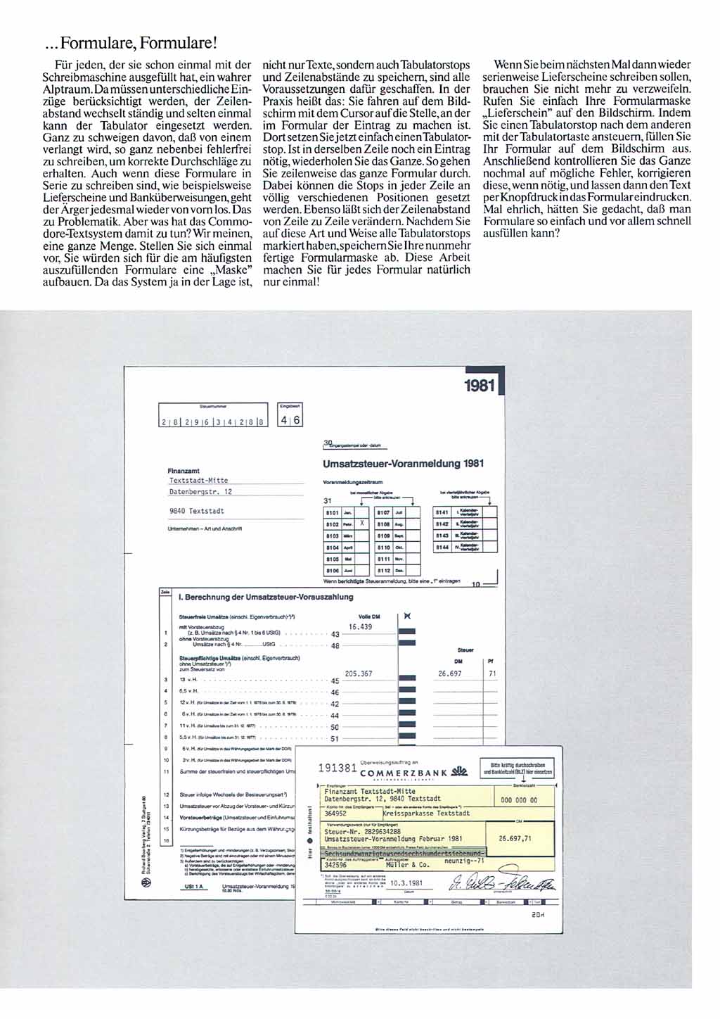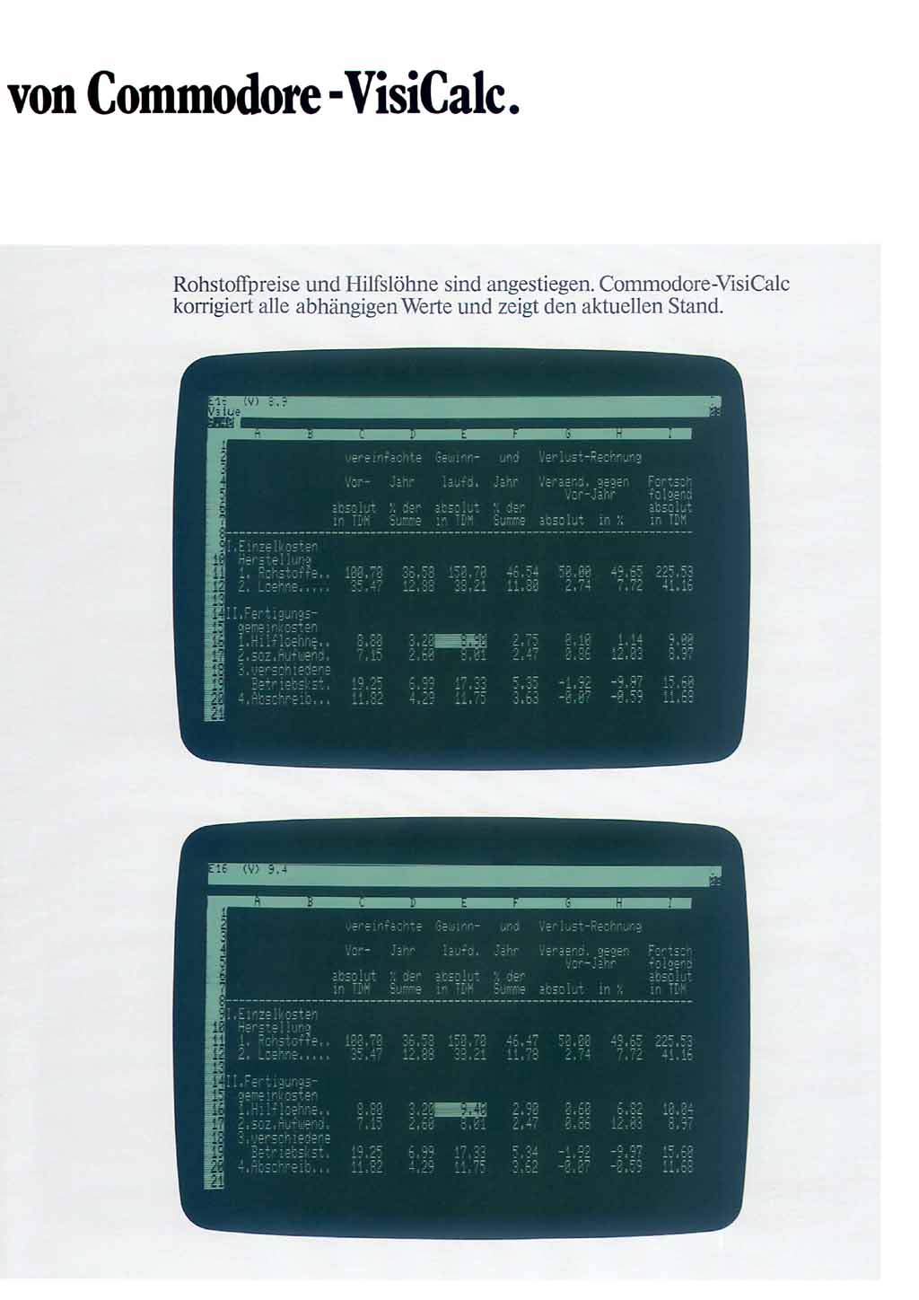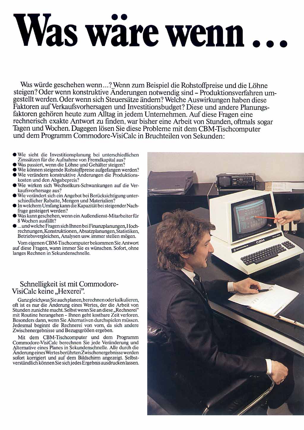 Here an advertisement for the Commodore-Version of the wellknown spreadsheet "VisiCalc", which dated likewise from the year 1981.